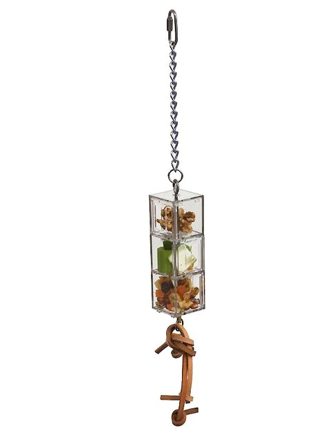 The Caitec Featherland Paradise 3 Sliding Doors Bird Toy will have your winged buddy developing new cool behaviors! Designed to promote mental and physical stimulation, it may also reduce the possibility of unwanted feather picking. It is crafted using strong plastic for long-lasting durability and is easy to hang in just about any cage using the strong stainless steel pear link. Foraging for food can help keep your beaked buddy at the top of his game, while also preventing boredom from getting the best of him.