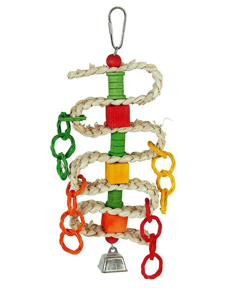 To keep your tweetie pie busy, look no feather than Caitec Paradise’s Braided Spools & Blocks Bird Toy. A braided rope weaves between blocks and links for a variety of textures, colors and shapes. As he spends time playing with this hanging toy, he’ll be too busy to cause trouble elsewhere. Plus, this toy encourages the healthy habits of preening and beak conditions. It hangs easily in any cage with a pear clip for quick installation and rearranging.