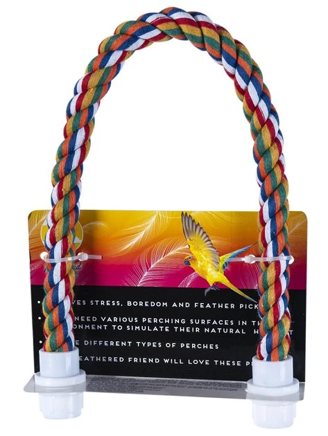 The Caitec Featherland Paradise Cotton Perch Bird Toy gives your winged companion a new corner to kick it! Designed to provide a place to hang out, it is crafted to keep him comfy and entertained while he swings the day away. Your feathered friend is sure to be fascinated with the distinctive shapes and vibrant colors—and you can even shape the perch to create new places for your pal to play. It’s easy to attach to just about any cage and is a great way to keep your beaked bestie from being bored.
