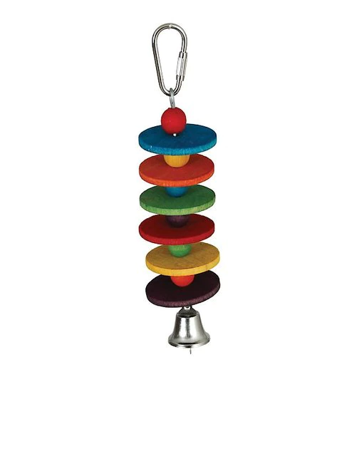 The Caitec Paradise Disco Bird Toy captures and keeps your feathered friend’s attention with a colorful combination of beads, blocks and a bell at the bottom—a virtual disco scene of plenty of textures and shapes for him to explore! As he spends time playing with this hanging toy, he’ll be too busy to cause trouble elsewhere. Plus, this toy encourages the healthy habits of preening and beak conditioning. It hangs easily in any cage with a pear clip for quick installation and rearranging.