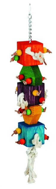 The Caitec Featherland Paradise Loaded Dice Bird Toy is like creating personal casino for your winged companion! Designed to keep him active, it promotes exercise, exploration and healthy, instinctual behaviors like chewing. Your feathered friend is sure to be fascinated with the distinctive shapes and vibrant colors, while the unique individual textures encourage preening and beak conditioning. Itβs easy to hang just about anywhere in his habit using the strong stainless steel chain and is a great way to keep your beaked bestie from being bored.