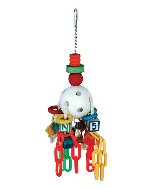 Peck-ture this: your birdie spends hours playing with Caitec Paradise’s Play N Ball Bird Toy while he’s also busy chewing, preening and conditioning his beak. This fascinating toy is a combination of everything he loves so there’s plenty to discover and inspire the natural activities that help keep him healthy. It also encourages him to exercise and explore his cage from new pers-peck-tives. Installing is a finch with a sturdy stainless steel chain and pear clip that attaches to any cage.