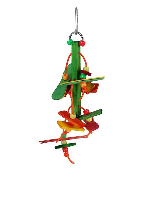 What’s nest to keep your feathered friend busy? Caitec Paradise’s Popsicle Hang Down Bird Toy! An intriguing and colorful combination of popsicle sticks, blocks, beads and rope beak his interest to keep him busy and out of trouble. He’ll love the playful toy, and you’ll appreciate he’s spending his time preening and conditioning his beak to stay healthy. With a pear clip, hanging and rearranging is a finch.
