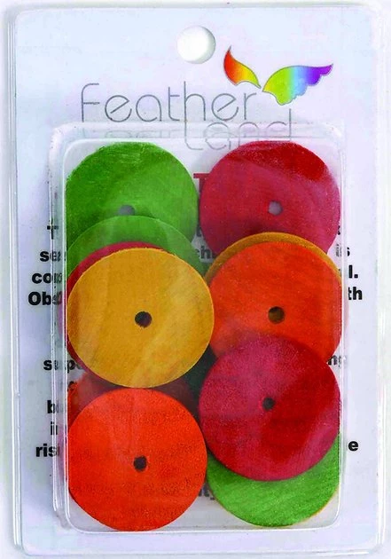 The Caitec Featherland Paradise Wood Disks Bird Toy give your flying sidekick something to sing about! Designed to promote normal chewing behaviors, it also encourages other healthy, instinctual activities. Your feathered friend is sure to be fascinated with the distinctive shapes and vibrant colors, while the hole in the center makes it easy for you to come up with your own creation! Itβs contains 20 pieces per pack and is a great way to keep your beaked bestie from being bored.