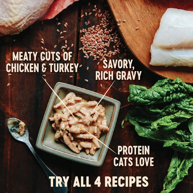 - Your kitty will love the delicious flavor and savory sauce, as a meal on its own or poured over kibble as a tasty meal topper.