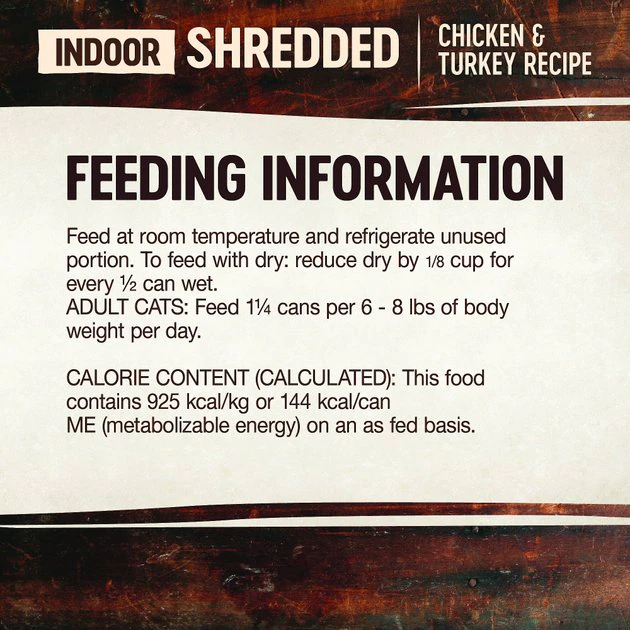 Nourish your kitty’s primal essence with the protein-rich nutrition of Wellness CORE Grain-Free Hearty Cuts in Gravy Indoor Shredded Chicken & Turkey Recipe Canned Cat Food. With chicken and turkey as the top ingredients, this nutrient-dense, grain-free recipe contains all the protein your pal needs to support his strong muscles and energy to fuel all his adventures. Every bite is packed with omegas from flaxseeds and salmon oil to maintain a healthy skin and coat, plus antioxidants, taurine, vitamins and minerals to support immunity and well-being. Serve up a bowl and feel good about providing your pal with everything he needs to thrive from the core, and nothing you wouldn’t want him to eat, like wheat, fillers, or anything artificial.