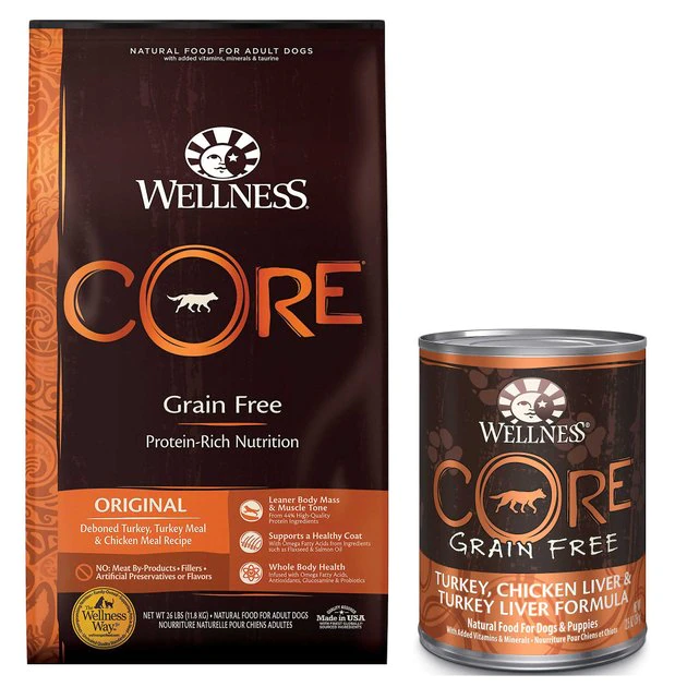 Give your good boy a tasty helping of key nutrients by bringing out the Wellness CORE Grain-Free Original Deboned Turkey, Turkey Meal & Chicken Meal Recipe Dry Food + Turkey, Chicken Liver & Turkey Liver Formula Canned Dog Food combo at dinner! These recipes were formulated to promote lean body mass and muscle tone, as well as whole body health. Free of meat by-products, corn, soy, artificial colors, flavors, and preservatives, you won’t have to wonder what your pal is actually eating. As a wag-worthy bonus, the dry food also nourishes the skin and coat, so your canine companion can look and feel his best.