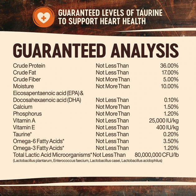 - Fortified with antioxidants, probiotics, vitamins, minerals, glucosamine, taurine and omega fatty acids—including DHA.