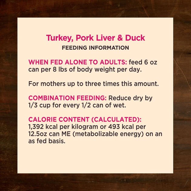 When fed alone to Adults: feed 6 oz Can per 8 lbs of body weight per day. For puppies, up to 2 times this amount. For mothers up to 3 times this amount.